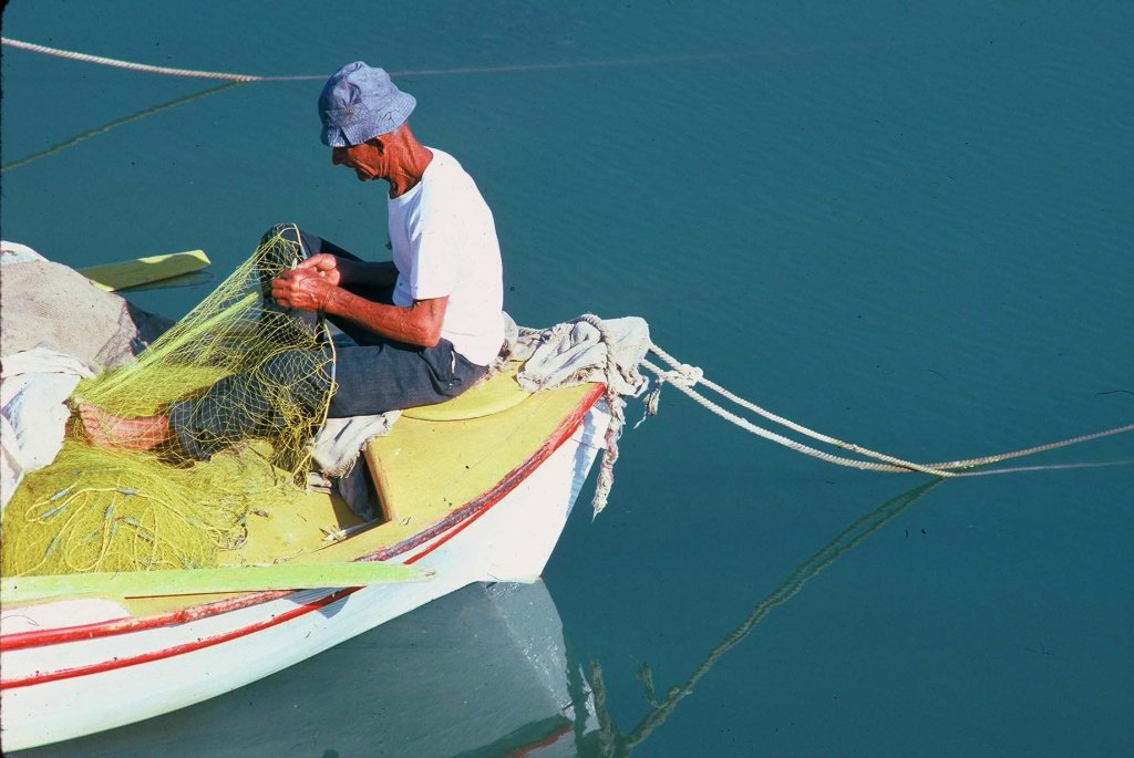 Heute lebt die Insel und ihre Bewohner in grossem Masse vom internationalen Tourismus, der seit den spaeten 70er Jahren nach Mykonos auch die umliegenden Inseln heimgesucht hat. Dennoch hat die Insel besonders in den Monaten Mai bis Juni oder September und Oktober noch ihren verfuehrerischen Charme erhalten. Dann sitzt man morgens allein mit einigen Fischern in Naoussa im Hafen ( Foto unten ) und kann seinen „elleniko metrio“ ungestoert und in Ruhe geniessen…